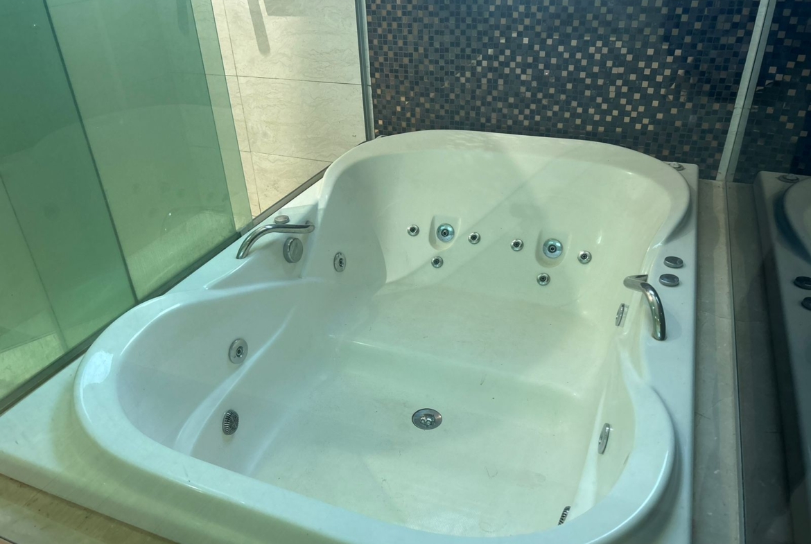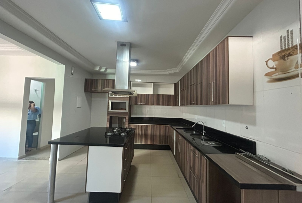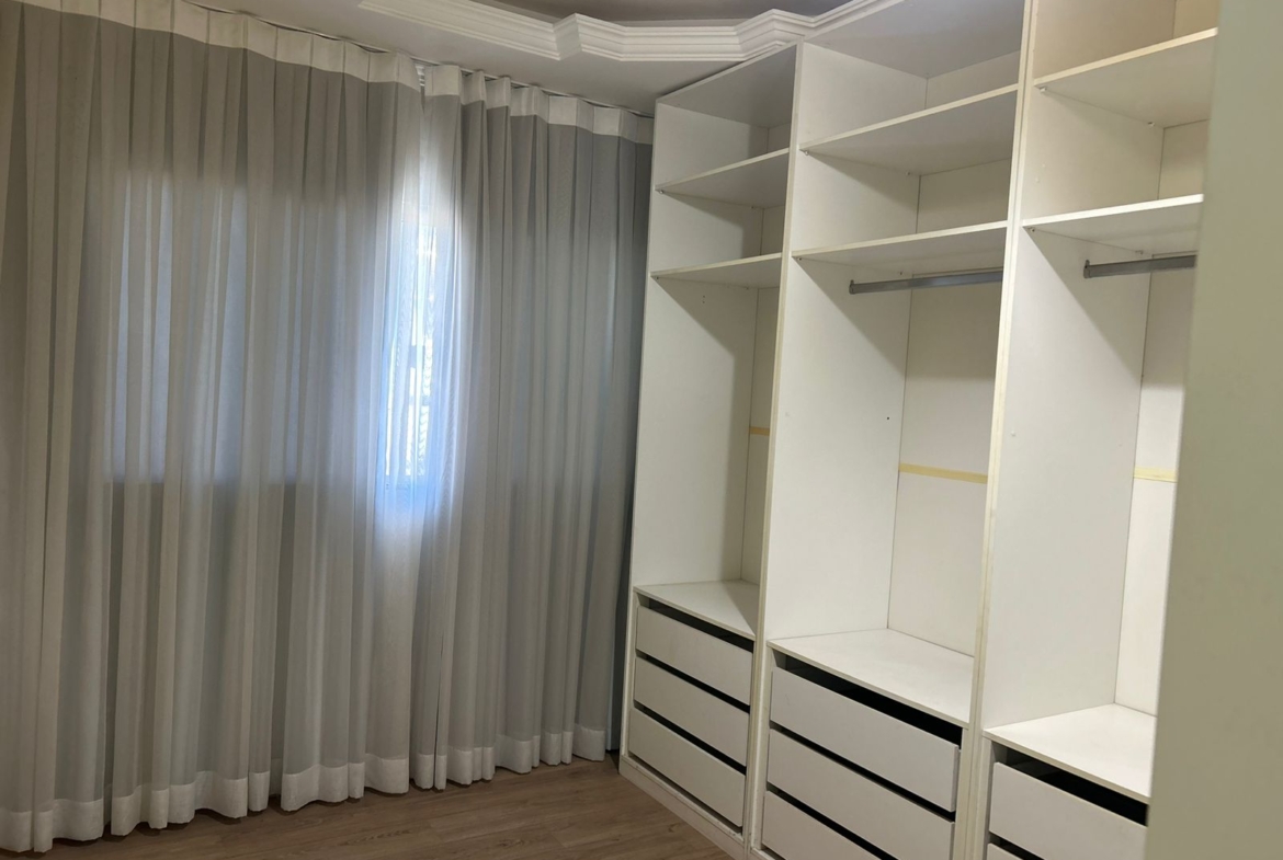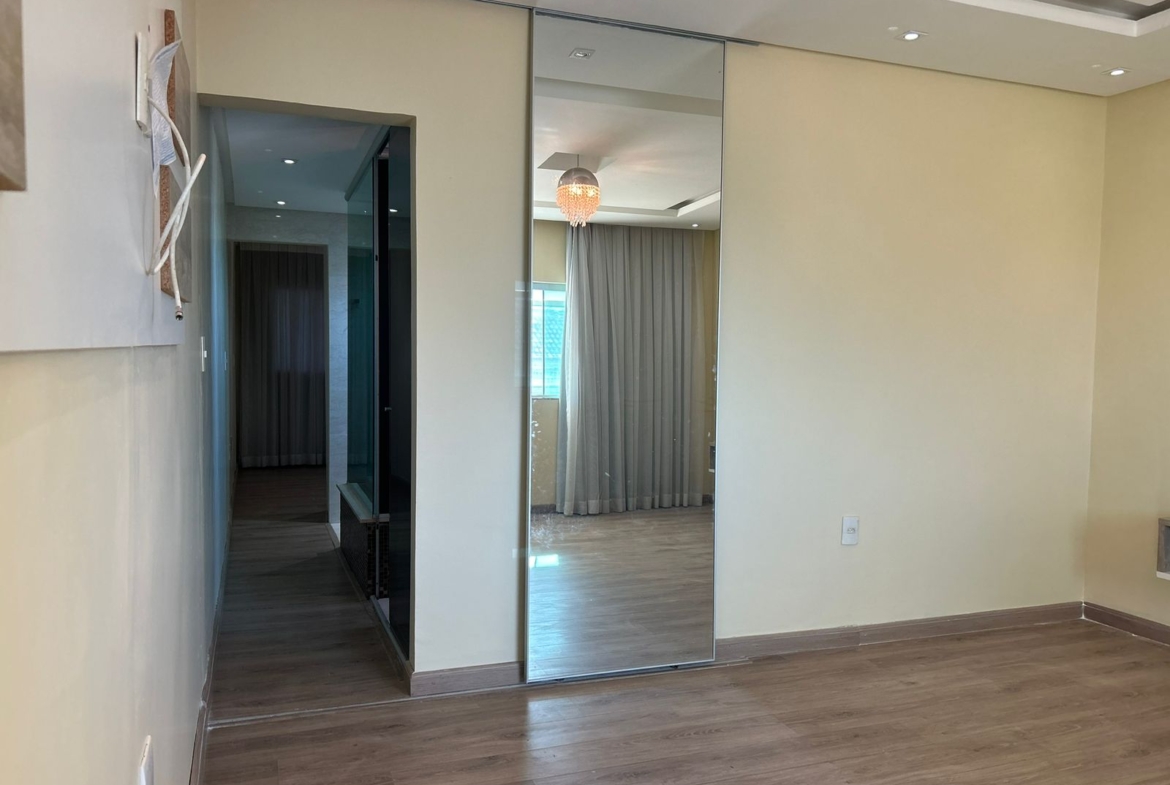 Parte superior: 3 quartos (2 suítes, uma com closet e hidromassagem), armários, varanda com blindex, piso em porcelanato.