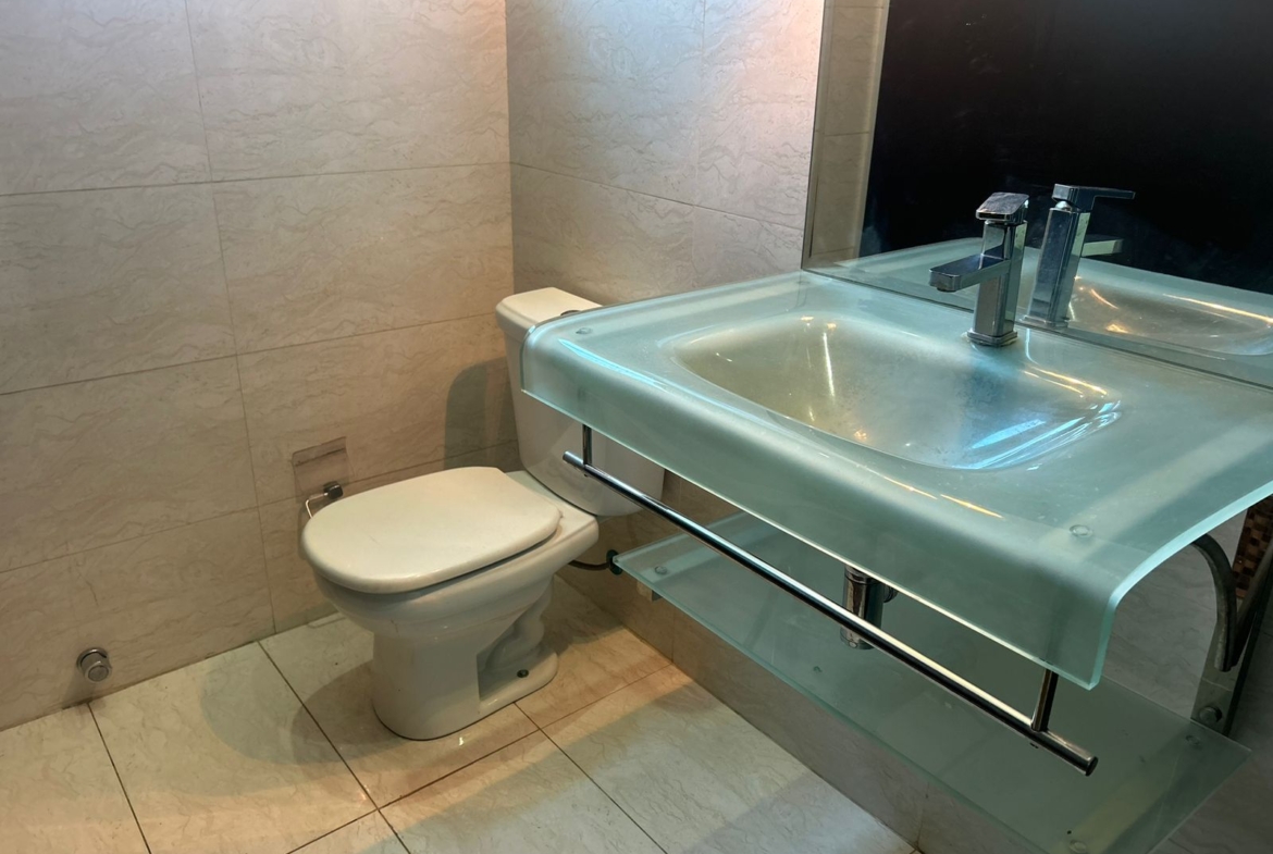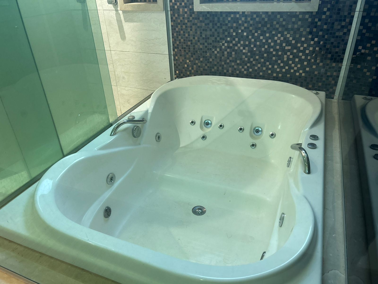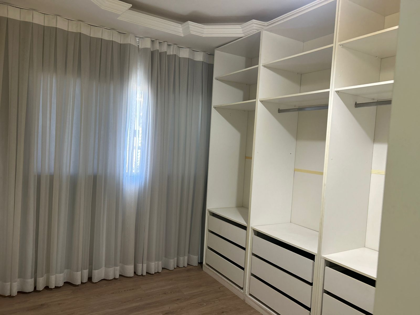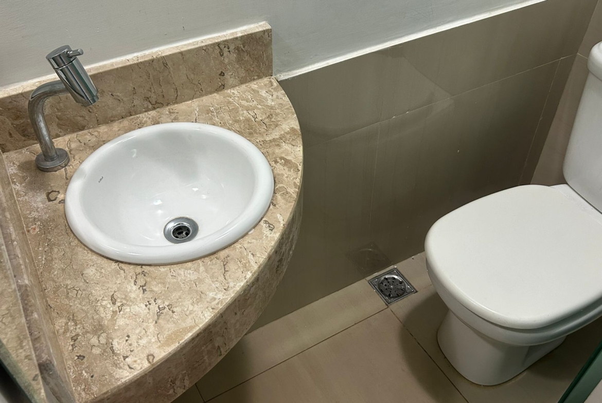 Parte superior: 3 quartos (2 suítes, uma com closet e hidromassagem), armários, varanda com blindex, piso em porcelanato.